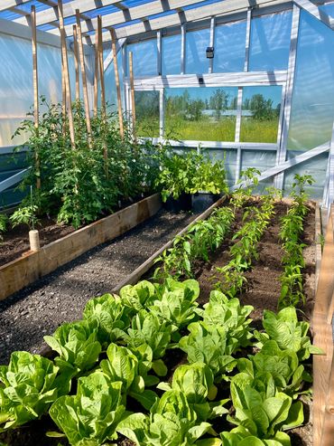 We began by constructing a smaller greenhouse to test which produce would be most viable for regular cultivation. Currently, we are growing an array of lovely vegetables, such as romaine lettuce, peppers, basil, and strawberries, within the confines of our greenhouse.